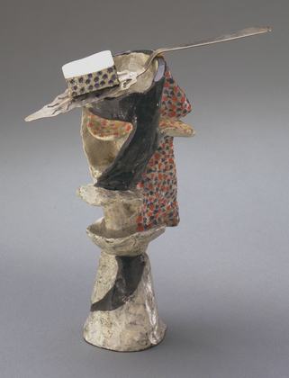 Скульртура находится в Филадельфийском музее искусств. Пикассо сделал 6 бронзовых копий «Бокала абсента» и каждую из них он отделал немного по-разному, сделав уникальной. Для него эта работа стала своего рода прорывом: скульптор впервые использовал бытовой предмет — настоящую ложку для абсента, которую он расположил между бокалом и кубиком сахара (абсент наливают в бокал сквозь кусочек сахара, лежащий на лопаточке с прорезями, как та, что вы видите на иллюстрации). Пикассо так прокомментировал эту работу: «Меня заинтересовало отношение между настоящей ложкой и ненастоящим бокалом. Они сталкиваются друг с другом». В 1914 году, во Франции, абсент был предметом жарких споров. В начале 1915 года этот напиток запретили в стране как угрозу физическому и моральному здоровью общества. Скульптура Пикассо стала крошечным памятником исчезающей богемной культуре. Читайте также:«Голова женщины (Фернанда)», 1909 Безымянная скульптура в Чикаго