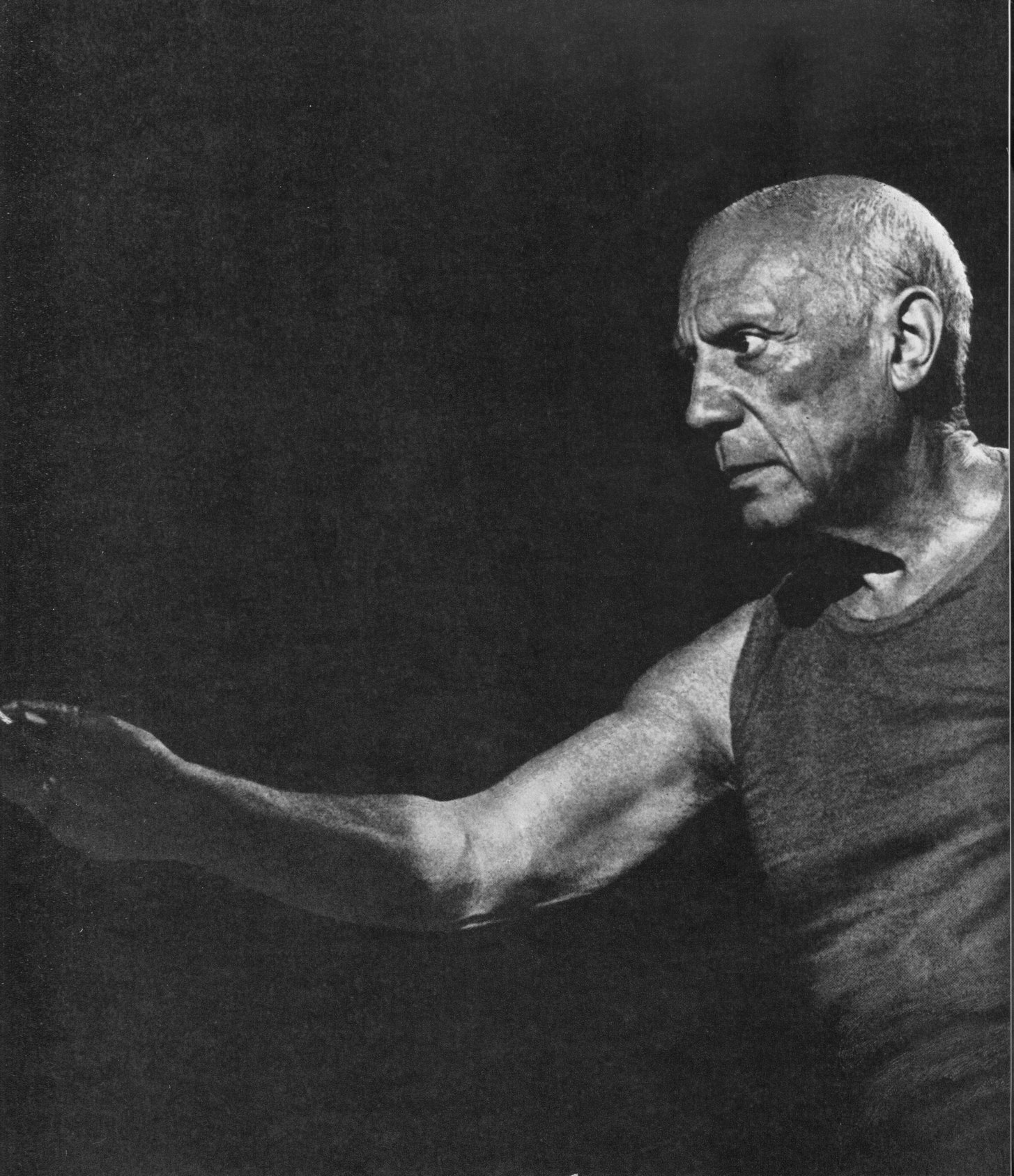 Б.А. Зернов. Вступительная статьяРисунки, акварели и гуаши Пикассо, образующие на выставке самостоятельный раздел, представляют собой небольшую, но очень разнородную и в то же время первоклассную по качеству группу его работ. Рисунку принадлежит громадная роль в творчестве Пикассо. Следует, однако, оговориться, что в искусствоведческом обиходе понятие «рисунок» не всегда однозначно. Оно может обозначать и владение формой и особую технику. (Порой говорят о художнике, что он «хороший рисовальщик», однако его рисунки могут быть холодны, сухи, скучны, или наоборот, — когда его работы в данной области обладают некими превосходными качествами, хотя сам «рисунок» у него может быть не лишен недостатков). Но Пикассо на высочайшем уровне отвечает требованиям и в том и в другом смысле слова. Он один из самых больших мастеров рисунка во всей истории искусства. Рисунок в его творчестве претерпел сложную эволюцию, но на любом этапе этой эволюции вновь открывавшиеся возможности были использованы художником с такой изумительной полнотой, что порою можно говорить о совершенстве. Почти все работы настоящего раздела относятся к периоду 1905—1914 годов. В это десятилетие в искусстве Пикассо происходят сложные изменения. Рисунок в его традиционном понимании (как фиксация определенных неизменных соотношений между элементами формы) едва ли не превращается в свою противоположность. Уже в 1905 году здесь наблюдаются значительные сдвиги: этим годом датированы первые четыре работы, и разница в понимании формы между самой ранней и самой поздней из них вполне очевидна. Самый ранний рисунок — «Голова старика в тиаре». Он наиболее традиционен, а типаж даже восходит к предшествующему этапу искусства Пикассо. Этот старик с суровым, пронзительным и затаенно-тоскливым взглядом напоминает тех аскетов, которых художник писал в годы «синего» периода. Однако легкая подцветка розовым и голубым вносит в образ лирическую, смягчающую ноту. Маленький рисунок молодого Пикассо щедро наделен той способностью «рассказывания» о предмете изображения, которую художник считал одной из важнейших задач искусства. Создавая образ короля, угнетенного своей властью, уставшего от нее, он подчеркивает, как не соответствует суровому лицу старца тонкая шея, с трудом выносящая тяжесть громадного убора, как контрастирует с этим лицом пышная орнаментика тиары, украшенной изображениями обнаженных женщин, мускулистых атлантов, фигурами животных, бычьими черепами и маской Медузы-Горгоны. Изображение короля перерастает в аллегорию бренности мира, которая вызывает в памяти слова библейского пророка о «суете сует». Рисунок выполнен пером, затем поверх первоначального изображения он проработан еще одним, более тонким пером и более темной тушью. Тщательная отделка придает образу черты изысканности и изящества, в то время как красная полоска одежды вносит в него драматическую ноту. Уже здесь многозначности изображения у Пикассо соответствует сложность художественных средств. В «Комедиантах» творческая задача, сюжет, образный строй, манера, техника, художественные средства меняются, но остается главное: поразительное умение Пикассо воплотить любую идею в соответствующей ей форме, громадная выразительность его художественного языка, его совершенное мастерство, кажущееся порою 