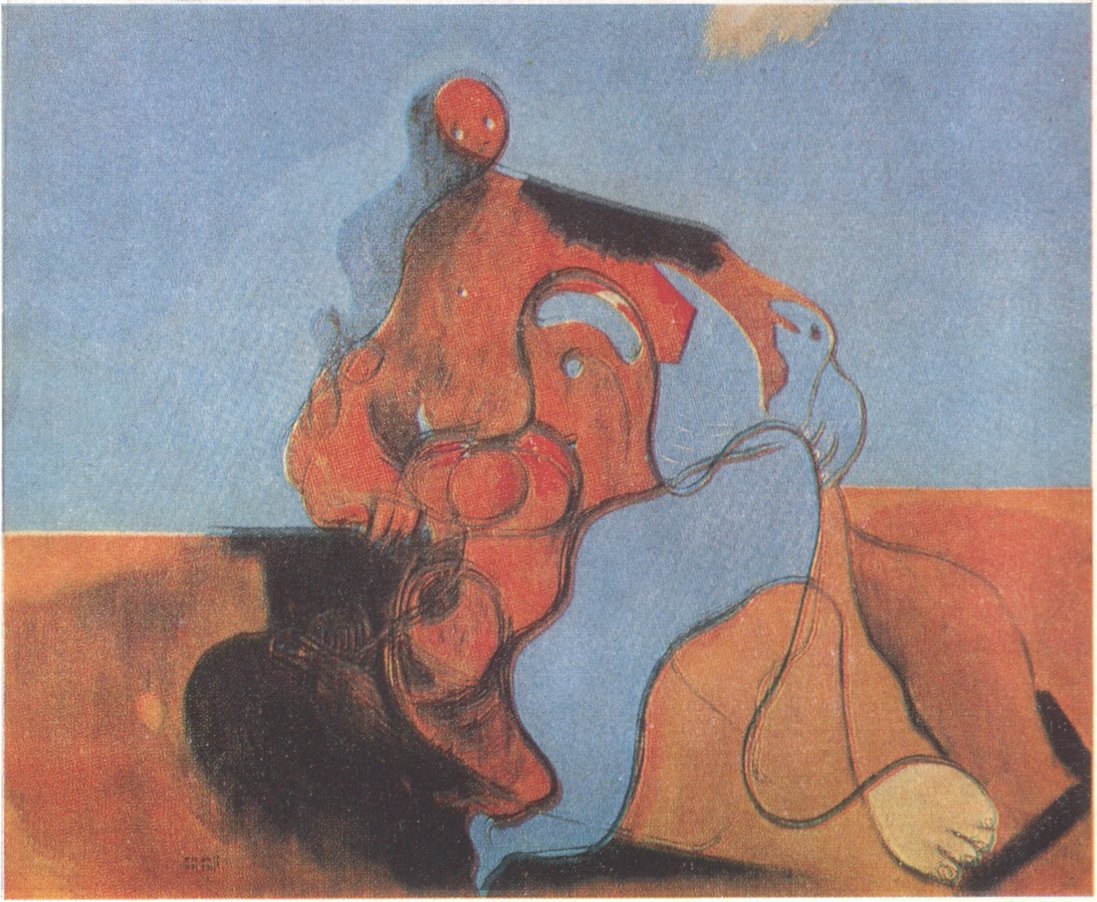 2. СюрреалистыВ сюрреализме также были выработаны особые формы фигуративности, резко отличные от изобразительности реалистического типа. Это направление, унаследовавшее воинственно-нигилистические установки предшествовавшего ему движения дада, стремилось к радикальному перевороту в соотношении реального и идеального, к полной «революции сознания», которая должна была включить в себя как одно из частных следствий революцию социальную. Сюрреалисты хотели стереть границы между материей и духом, найти ту точку, в которой «жизнь и смерть, реальное и воображаемое, прошлое и будущее, коммуникабельное и некоммуникабельное, высокое и низкое больше не воспринимаются как противорчия»1. Как полагал Бретон, такая точка была найдена в глубинах подсознания, которое, будучи освобожденным от контроля разума, от культурных и социальных наслоений, продуцирует собственную «реальность», отличную от той, которую познает бодрствующий разум. В этом пункте идеология сюрреализма опиралась на учение Фрейда. На фрейдовском подсознательном, обнаруживающем себя в автоматических действиях, случайных оговорках, но более всего — в сновидениях, Бретон и его соратники пытались выстроить мировоззрение, кардинально переворачивающее отношение между объективным и субъективным, реально существующим и воображаемым. Уже в первом манифесте сюрреализма (1924 г.) Бретон писал: «И поскольку никоим образом не доказано, что «действительность», меня задевающая, удерживается при этом и в состоянии сна, что она не тонет в беспамятстве, не должен ли я приписать сновидению качество, в котором порой отказываю действительности, а именно: убежденность в его бытии, на какое-то время лишающем меня возможности в нем усомниться? Не должен ли я в большей степени полагаться на свидетельства грезы, нежели на возрастающий с каждым днем уровень самосознания?»2 С еще большей определенностью высказывался молодой Арагон: «То, что мыслится, существует»3. В идеологии сюрреализма греза (или сон, мечта — rêve) наделялась свойством объективности, в противоположность «субъективизму» рационального, то есть «искаженного» цензурой разума, восприятия. Первый манифест сюрреализма заканчивается знаменитым определением: «Чистый психический автоматизм, посредством которого намерены выразить устно, письменно или каким-либо иным образом действительное функционирование мысли. Диктовка мысли за пределами всякого контроля, осуществляемого рассудком, вне всякой эстетической или нравственной заинтересованности»4. В сюрреалистической практике апробировались самые различные способы отключения или подавления сознания — алкогольное и наркотическое опьянение, спровоцированный транс, сон наяву, автоматические действия, игры в случайность. Участникам этого движения идеальным казалось состояние безумия, галлюцинаторного бреда. Абсурдные акции, которыми так увлекались первые сюрреалисты, были для них не только формой «антибуржуазного протеста», но и отчасти имитацией превозносимого в теории безумия. Последовательное осуществление такой программы делало невозможным художественное творчество. Первые участники движения с энтузиазмом отрекались от литературы и искусства, а свои занятия автоматическим письмом, имитацию сомнамбулических состояний и отчеты о сновидениях рассматривали л